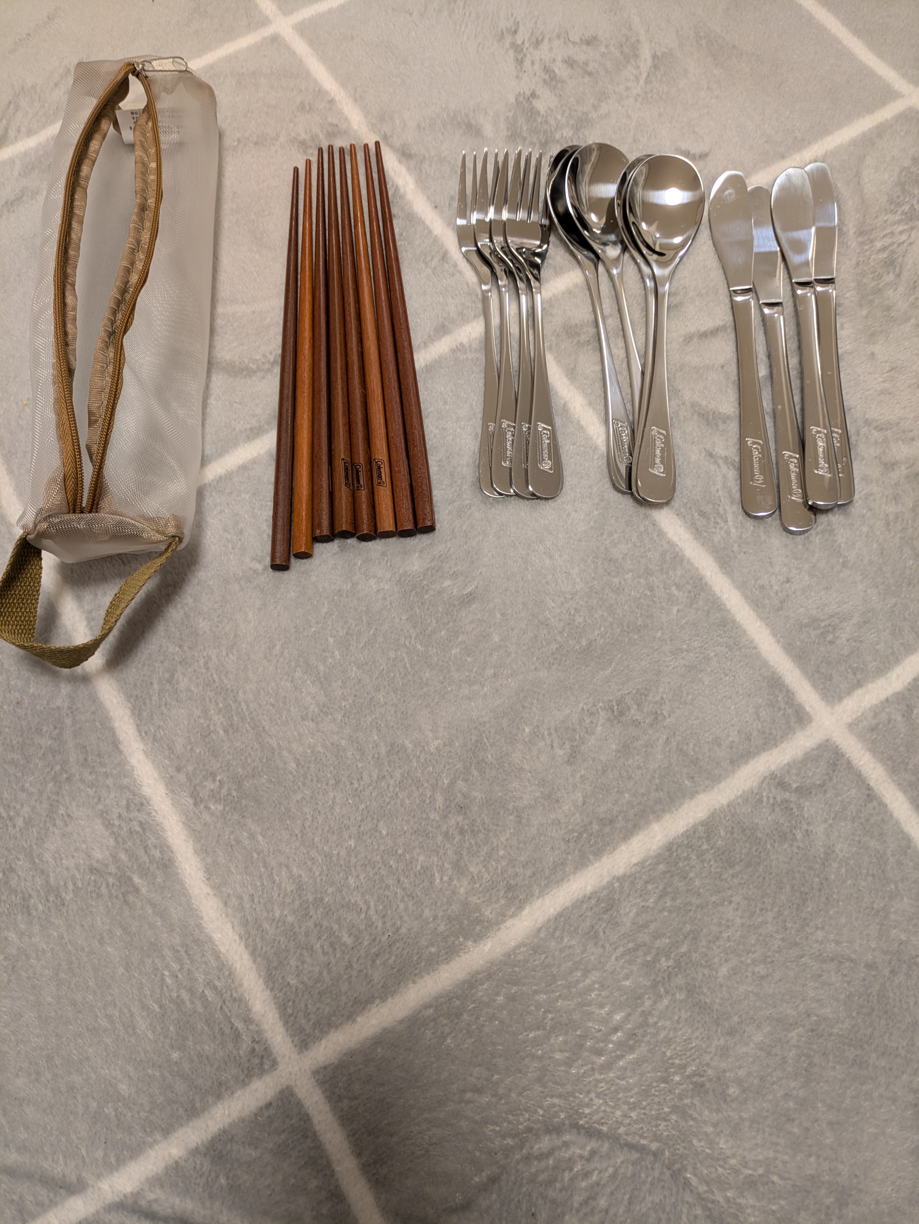 100均の割り箸やフォークをずっと使ってましたが、食事はキャンプの中でも重要なイベントなので試しに購入しました。キャンプ感が増すしワンランクアップした気分になれます。別途購入した同じくコールマン食器セットの収納袋に入るので便利です。ステンレスで質感良いしナイフまであります。家族におすすめです。
