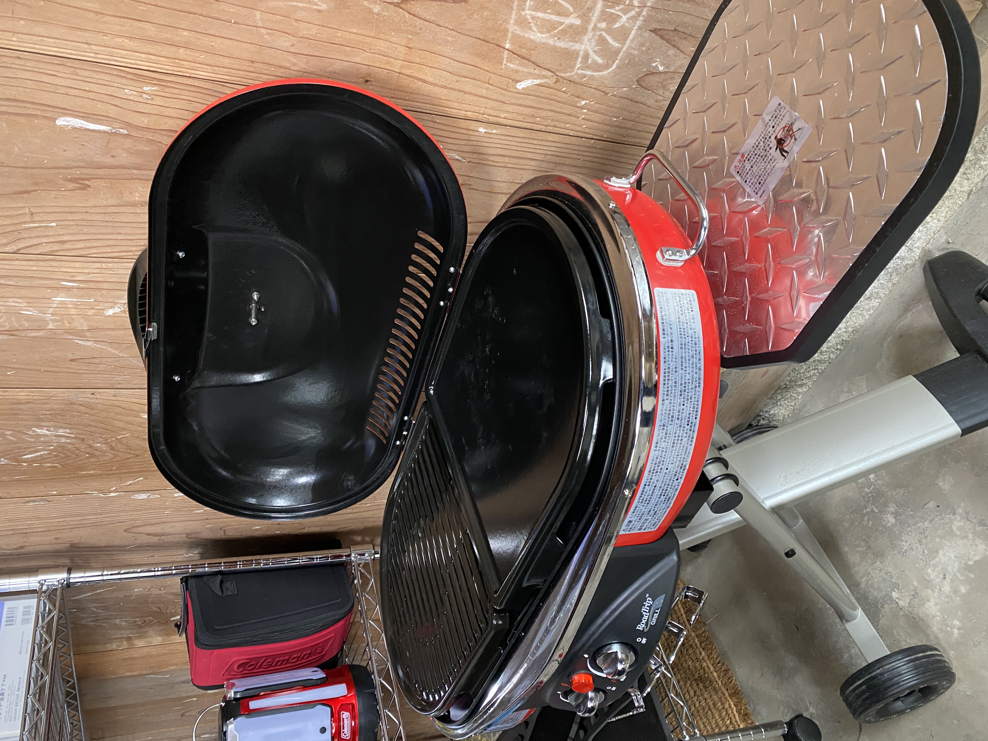 ■充実したアクセサリー、フタに温度計、メッキパーツ類、アルミボード付きサイドテーブル