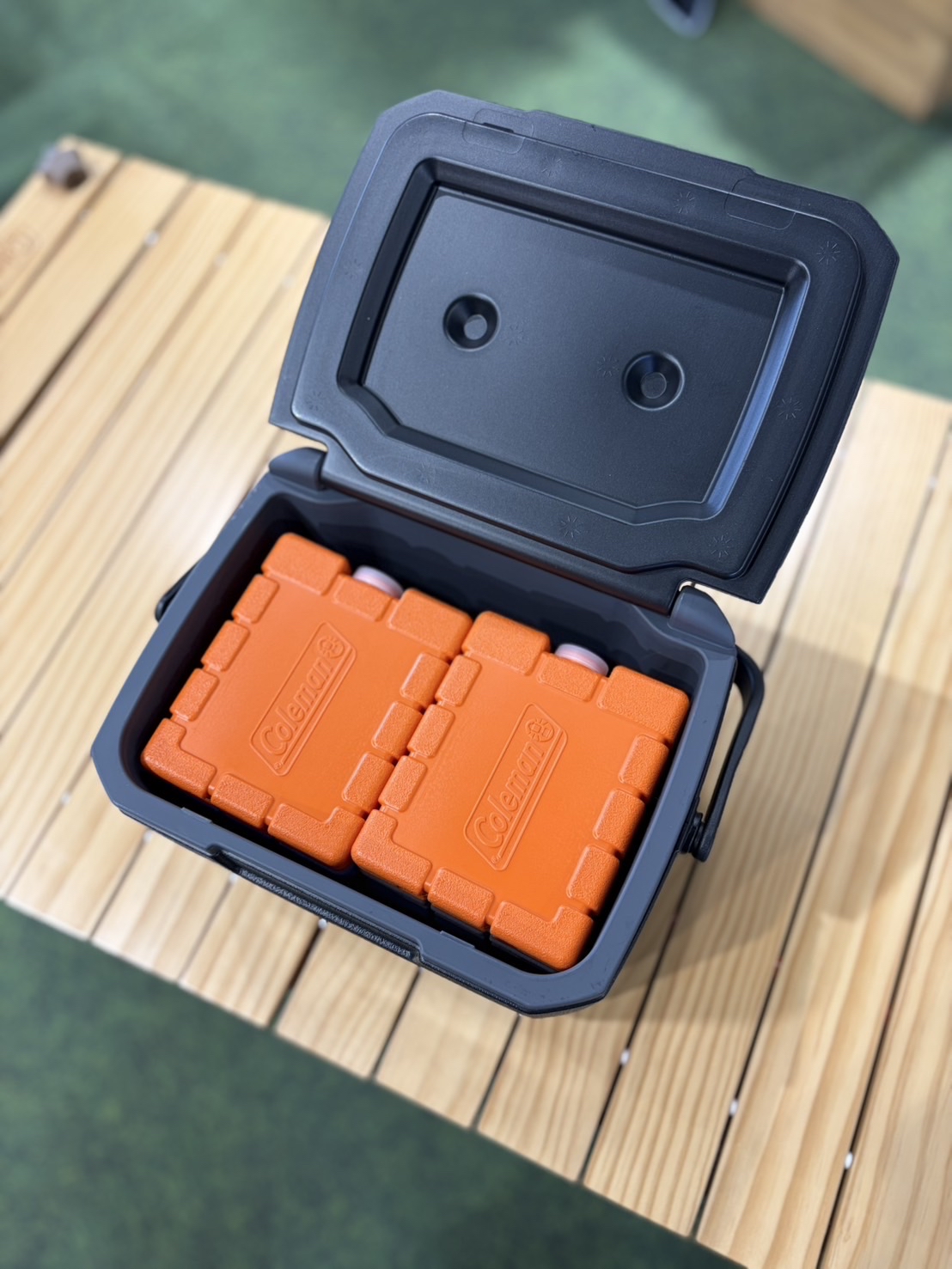 - ■保冷効果: 9時間 *テイク6本体に常温の600mlペットボトル2本を入れ、その上に凍らせたアイスブリックSを2個横並びに置いた状態で保冷試験を実施。飲料の温度が7℃以下を保てる時間を計測(室温約30℃)