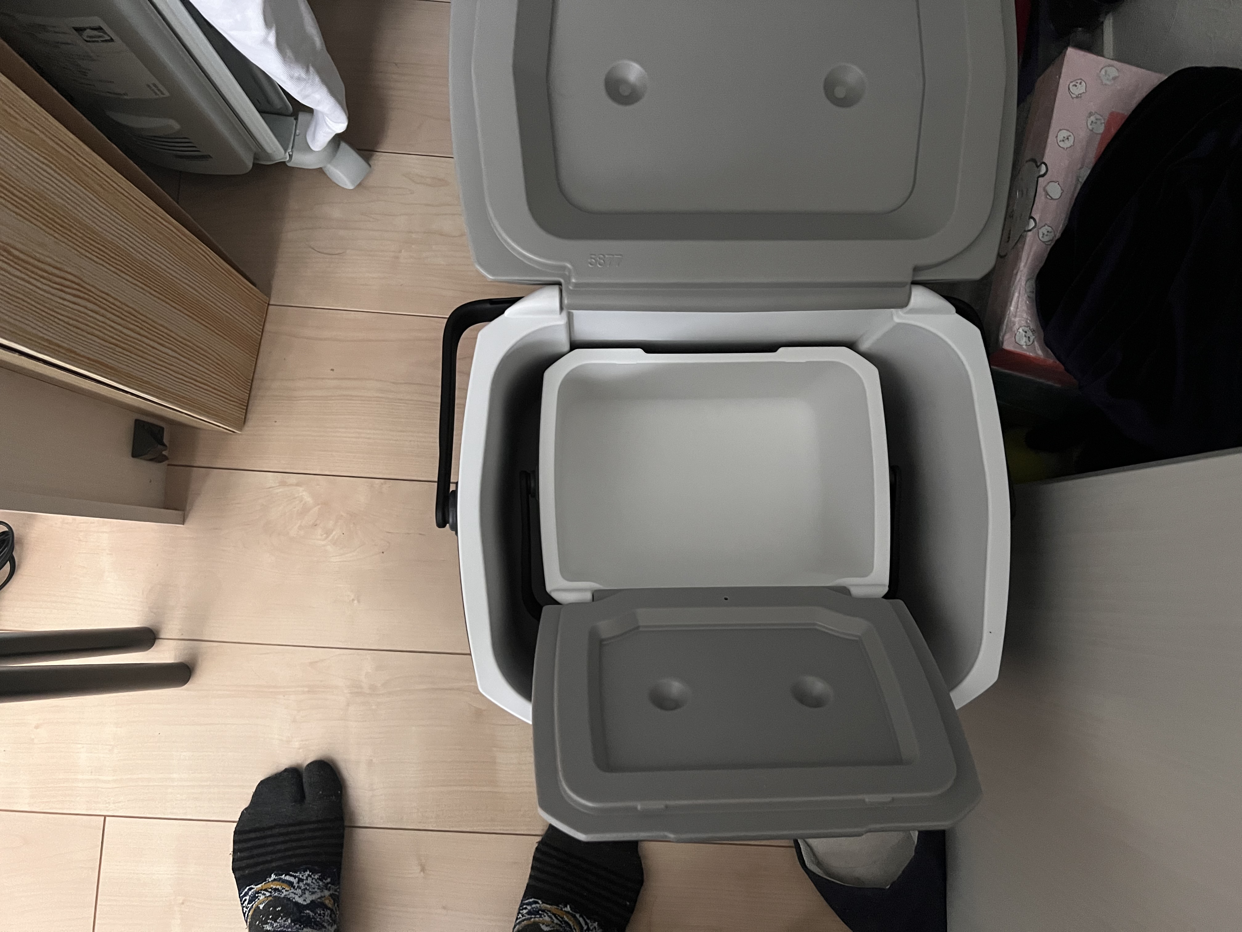 小さいものと同時に購入しました。こちらは買い物用として購入。大きい割には邪魔にならず、後部座席足元に置けるサイズです。これのひとまわり小さいものがすっぽり入るので、空の状態だと重ねて収納もできます。