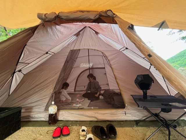 とにかく設営が簡単です!!4隅をペグダウンしたのちにポールを中から立ち上げるだけ!!