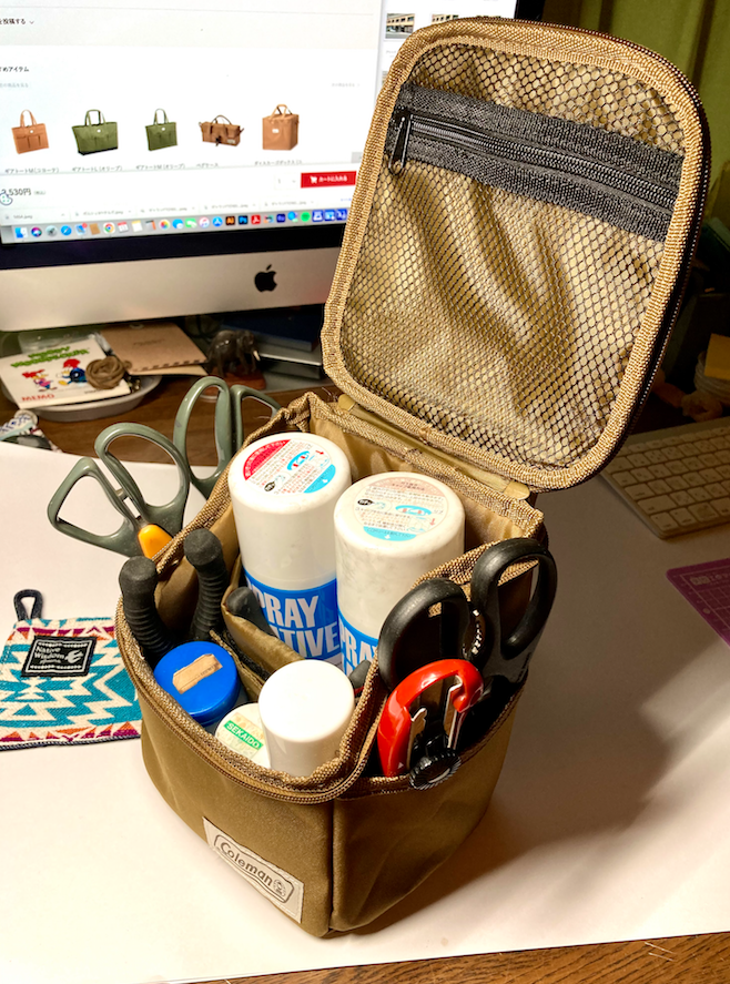 本来は調味料入れですが写真を見た瞬間これはいけると思いツール入れに使用してます。両サイドにもポケットがありとても重宝しています。次は本来の目的用にもう一つ購入予定です(笑)