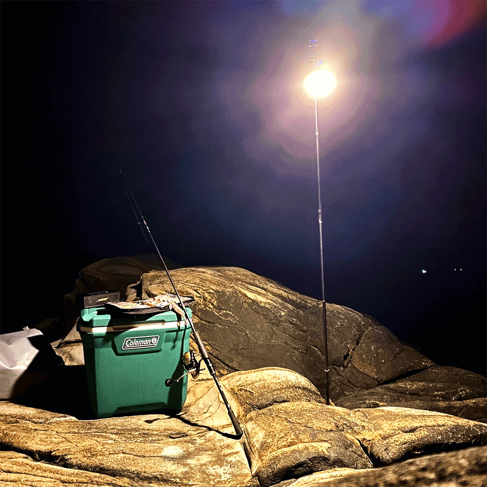 私は常に車に積んでいて、キャンプはもちろん、今回は夜釣りでも使ってきました。パックアウェイランタンスタンドで釣座を照らしたり、カラビナで腰にぶら下げれば夜の足元を照らしてくれます。また車のボディにマグネットで付けることが出来るので、準備の時にも役立ちます👍