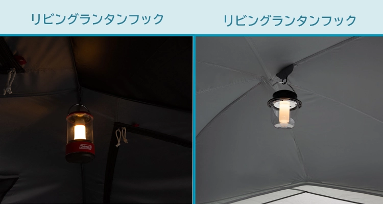 日中は必要に応じてサイドウィンドウから採光ができ、夜は寝室とリビングにあるランタンフックに灯りを付けることができます。